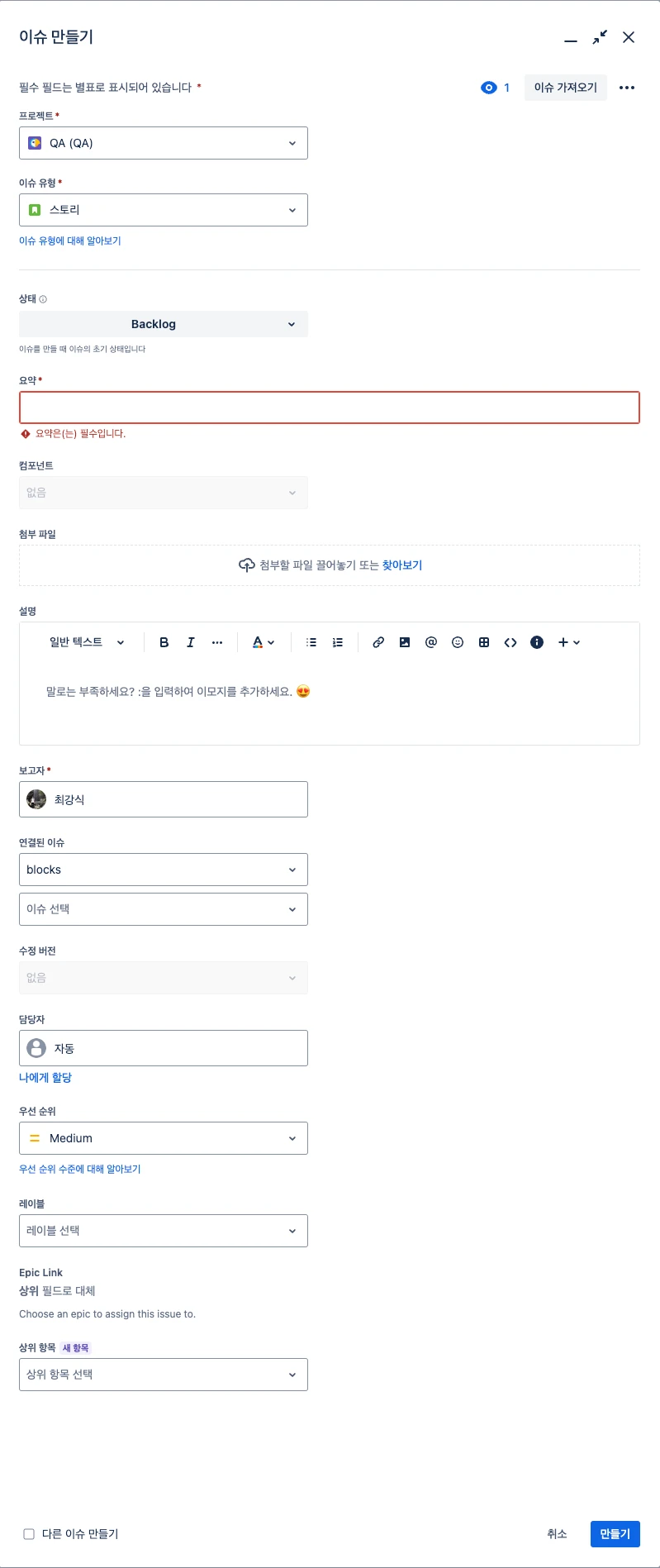 지라를 예로 들어 QA의 테스트 케이스를 작성하는것을 적어보겠습니다.
